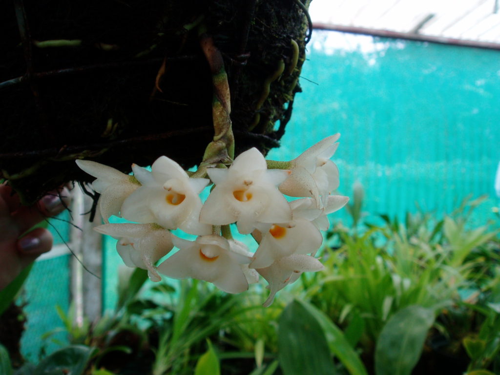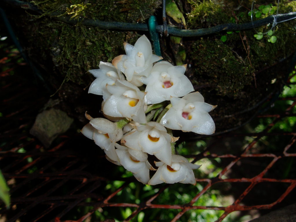 本種はコスタリカから南米大陸北部のパナマに接続するコロンビアEl Choco地方やエクアドルの低地の湿潤な熱帯雨林に生育する着生種で、丸い偽球形に2-4枚の葉をつけ基部から数個の花梗を下垂させます。白色蠟質の芳香のある花をつけ、唇弁の内側は黄褐色です。パナマ・エルバジェにおける花の時期は1-3月ごろの乾季です。