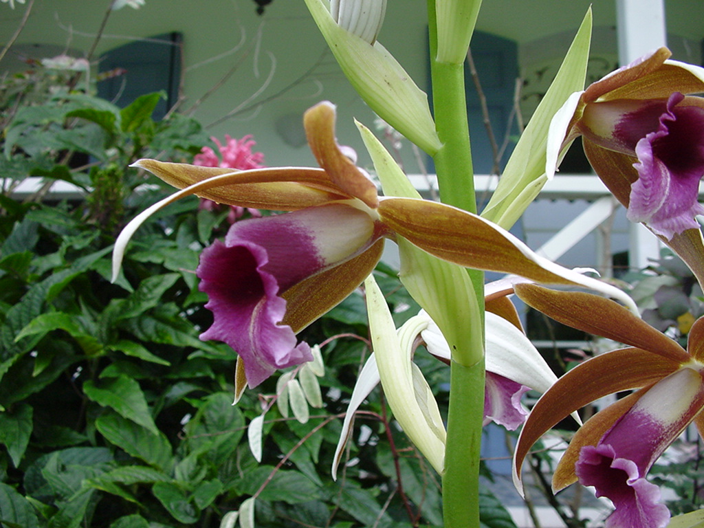 Phaius tankervilleae は侵入植物としてハワイ、フロリダ、中米やカリブ諸島にも野生化しています。我が国ではカクチョウランと呼ばれています。