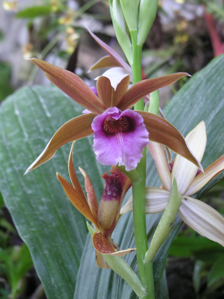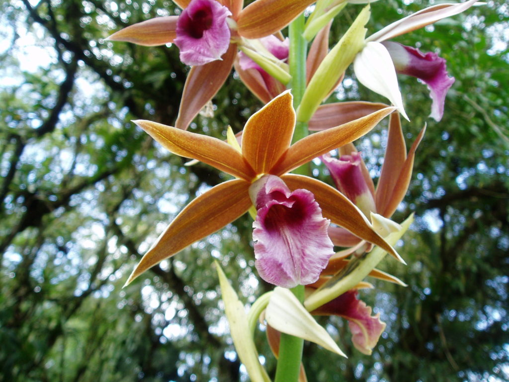 大型の緑色の偽球形を持つ地生ランで、本来は熱帯アジアに広く分布する地生ランだが、おそらく人為的に中米やカリブ諸島に持ち込まれたものと思われます。1mほどの花茎に多数の花をつけます。