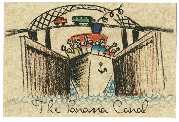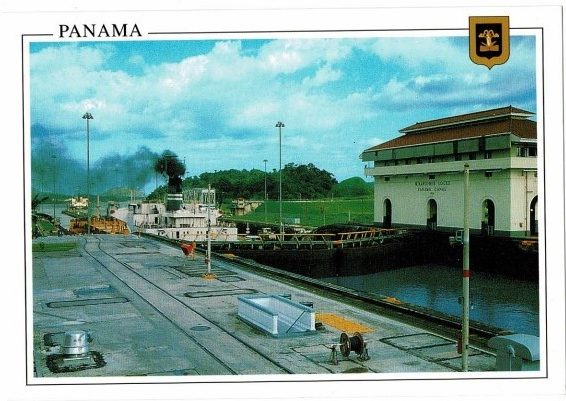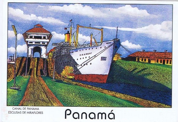 この絵は20年以上前のパナマ運河ミラ・フローレス閘門 です。