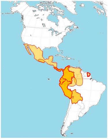 メキシコからエクアドルにかけて中南米に広く分布する。パナマでは乾季(12月~3月ごろ)に咲く。