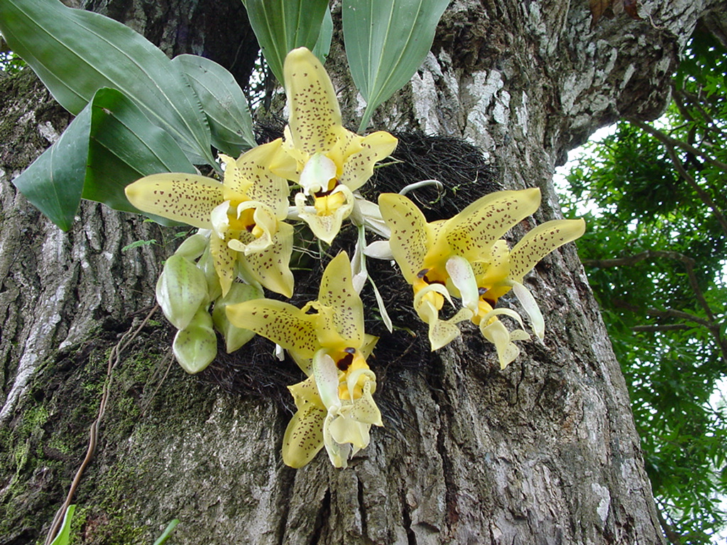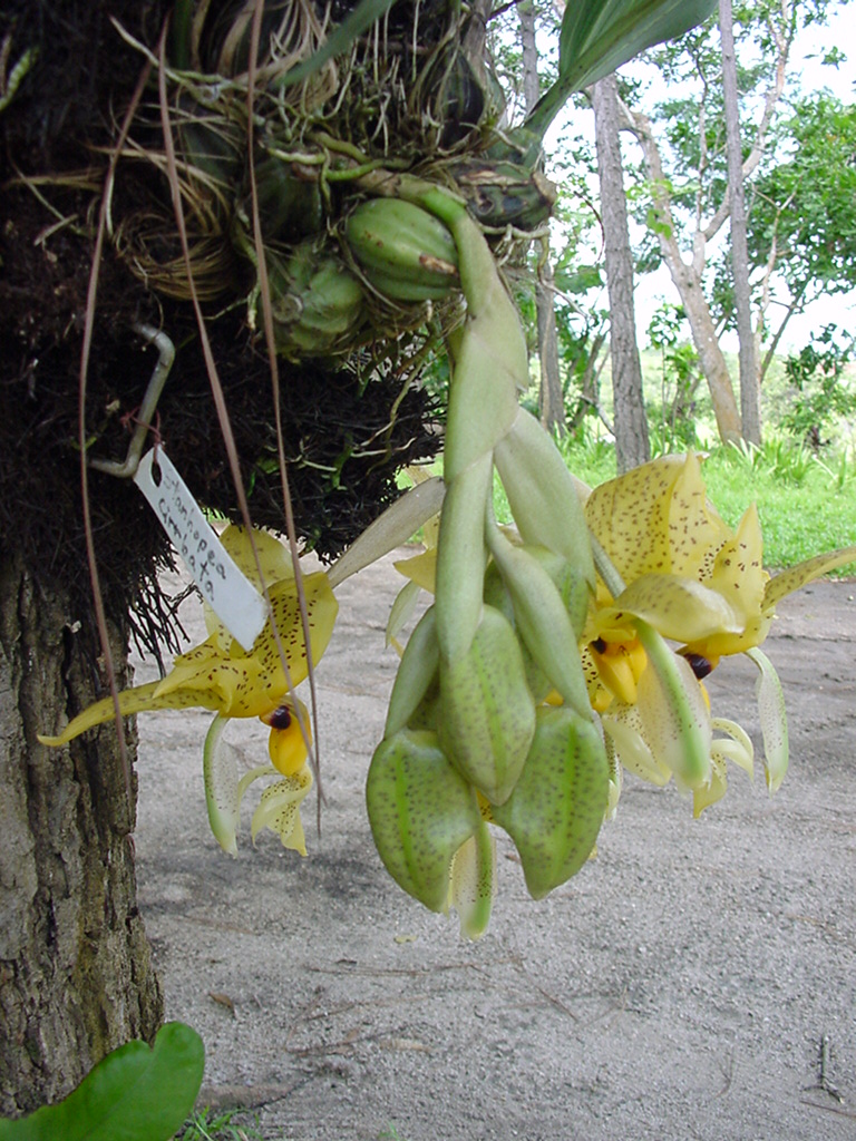Stanhopea亜属 Wardii節、パナマの湿潤な熱帯雨林に分布。雨季に開花。